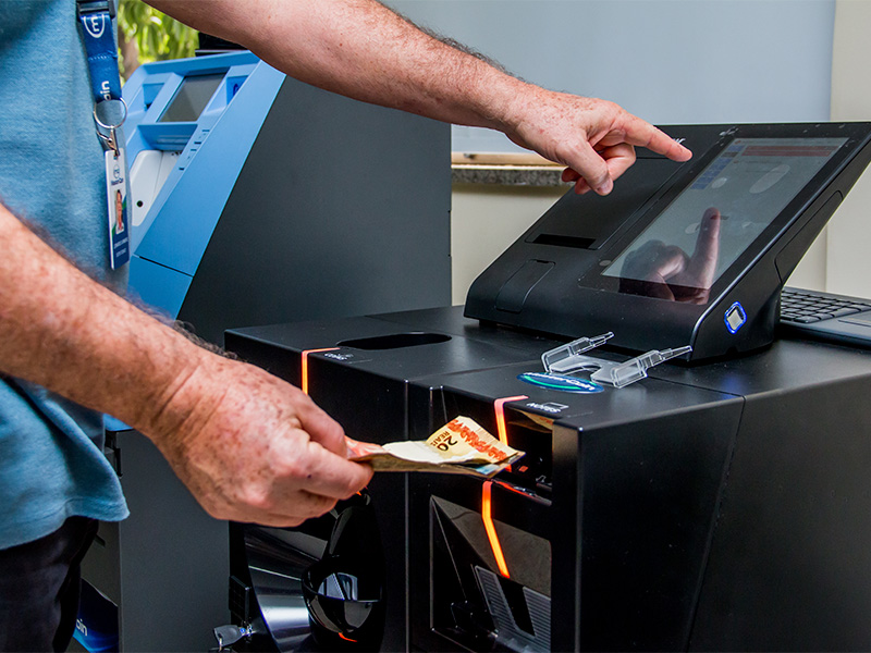 É a solução ideal para automatização de caixa no atendimento ao cliente. Aceita, autentica e armazena cédulas e moedas com muita rapidez.