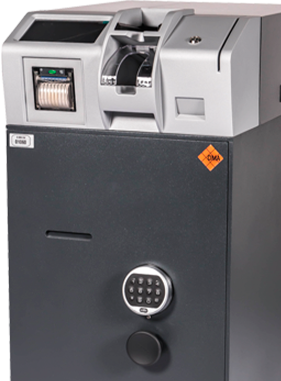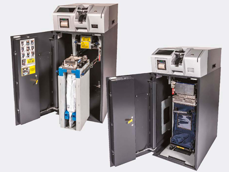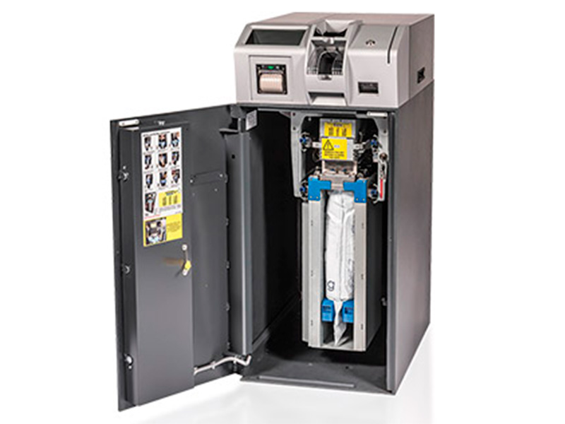 Sistema de armazenamento de cédulas em rolos e malotes de lona ou plástico.
