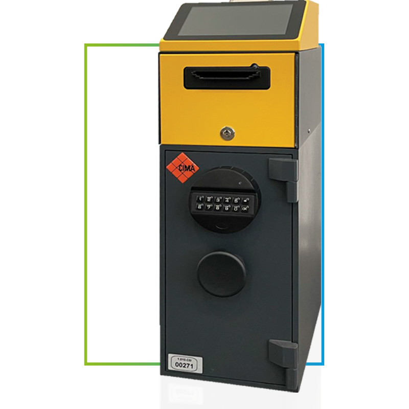 Projetado para aplicações de baixo volume de cédulas, onde é essencial o armazenamento em um local seguro.